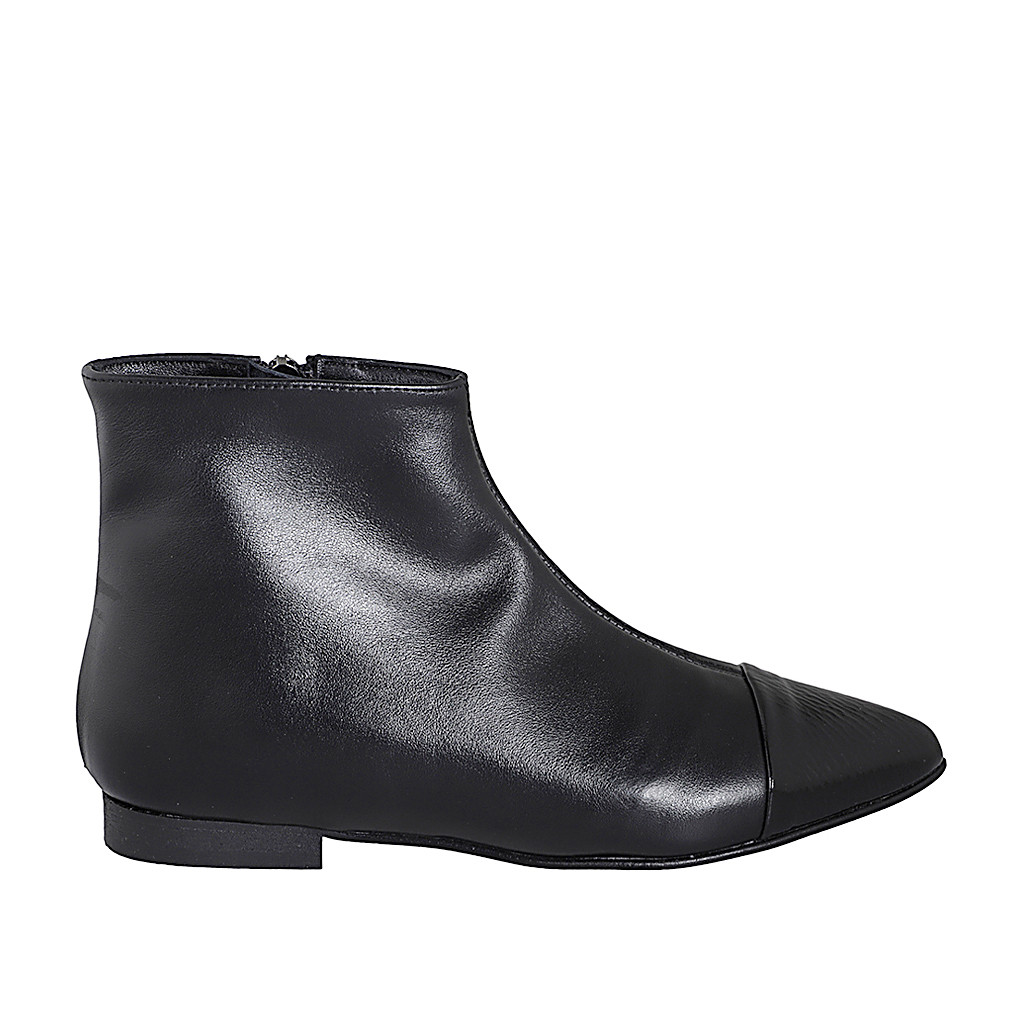 Stivaletto a punta da donna con cerniera interna in pelle nera e puntale in vernice nera con tacco 2 - Misure disponibili: 33, 34, 35, 42