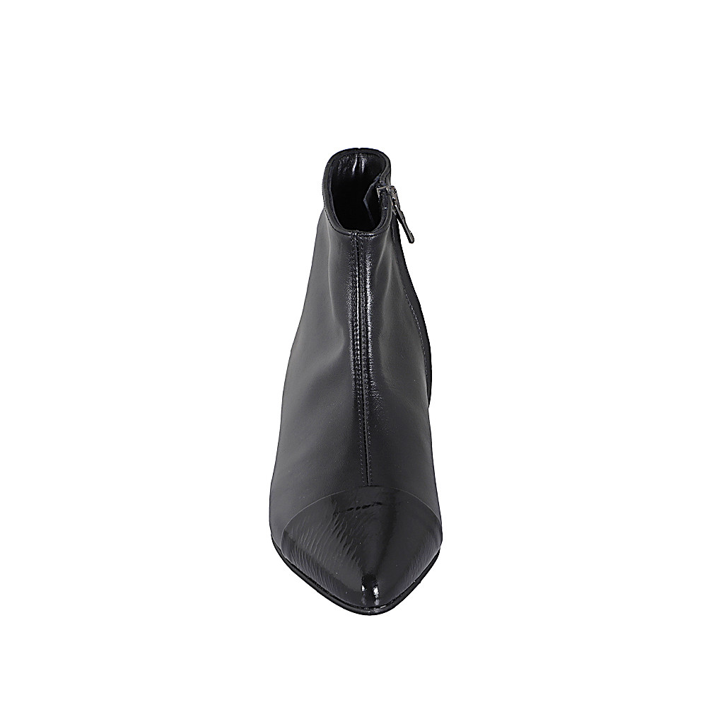Stivaletto a punta da donna con cerniera interna in pelle nera e puntale in vernice nera con tacco 2