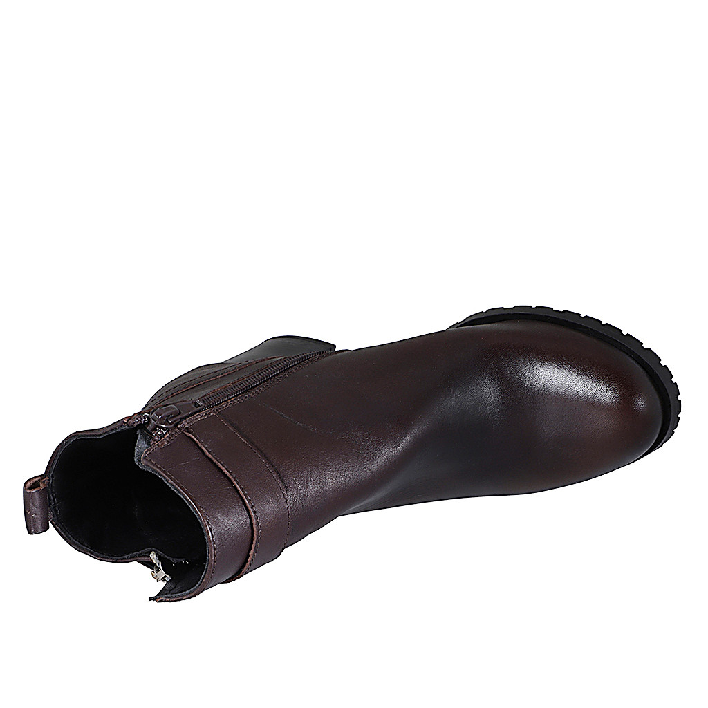 Stivaletto da donna con doppia cerniera, fibbia e punta tonda in pelle testa di moro tacco 7 - Misure disponibili: 43, 45