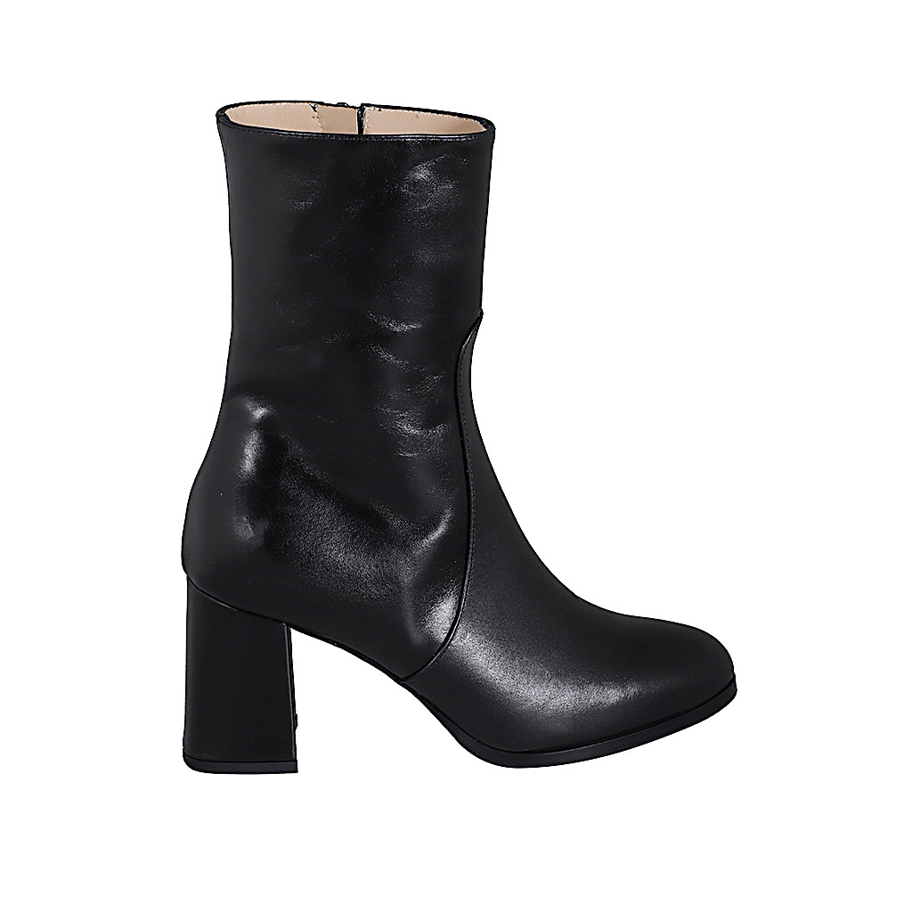 Stivaletto alto da donna con cerniera in pelle nera tacco 7 - Misure disponibili: 33, 35, 42, 43, 46