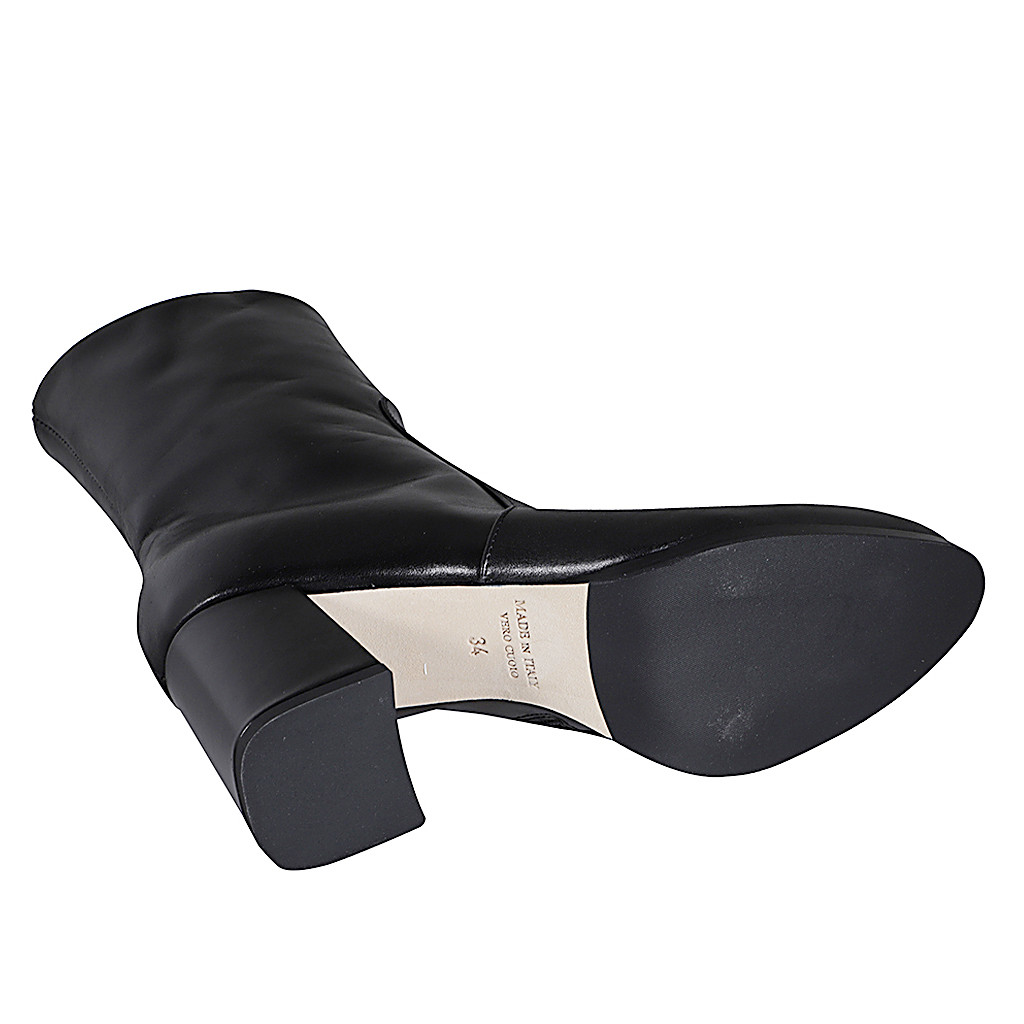 Stivaletto alto da donna con cerniera in pelle nera tacco 7