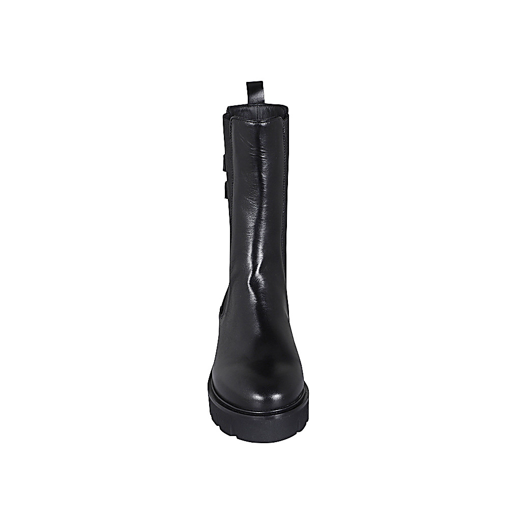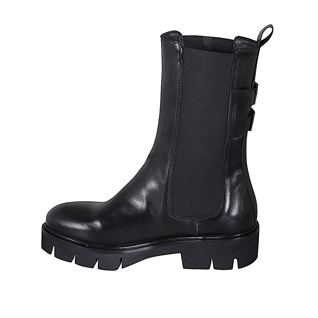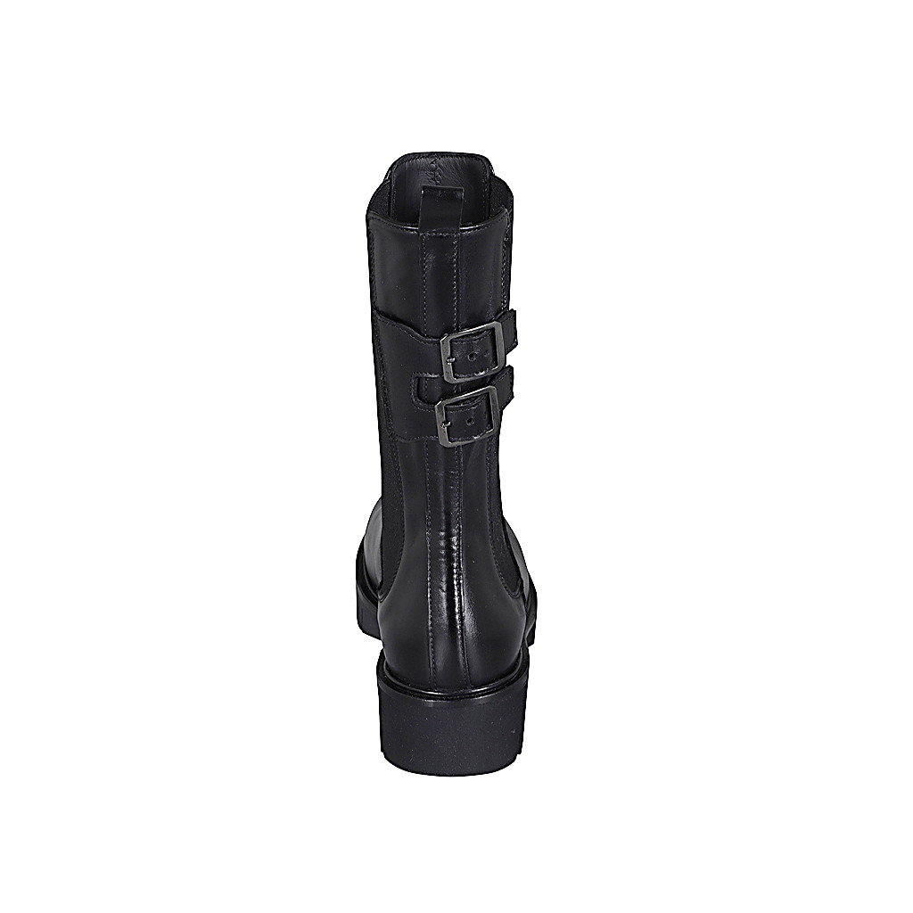 Stivaletto Chelsea alto da donna con fibbie in pelle nera tacco 4