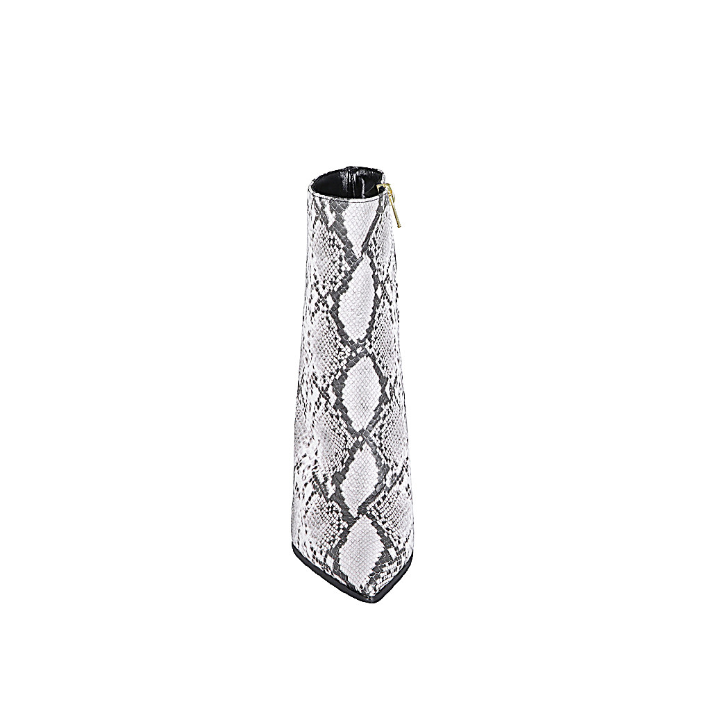 Stivaletto a punta da donna in pelle stampata bianca e grigia con cerniera tacco 10 - Misure disponibili: 32, 33, 34, 42, 43, 44, 45, 46