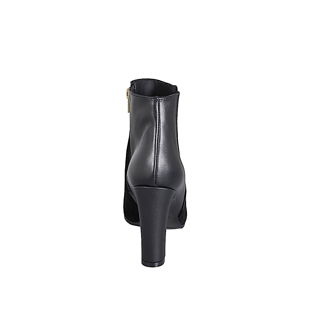 Stivaletto a punta da donna in pelle e camoscio nero con elastico e cerniera tacco 10