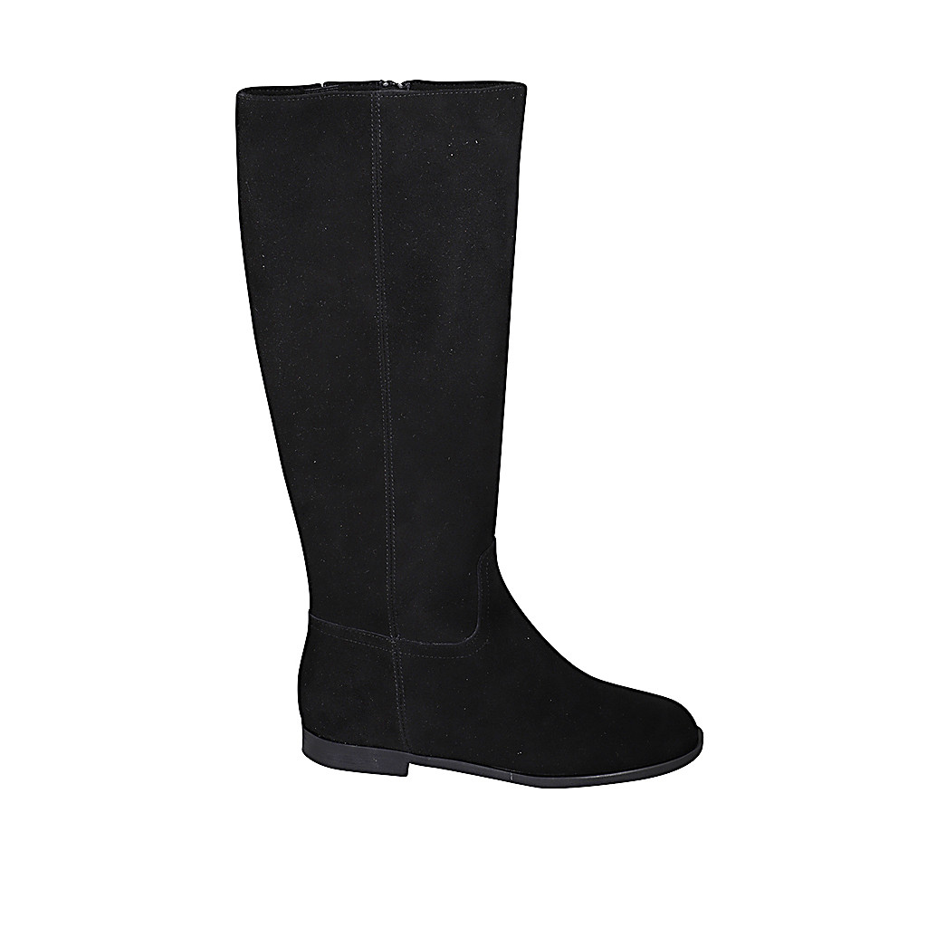 Stivale da donna liscio con cerniera e piccolo elastico in camoscio nero tacco 2 - Misure disponibili: 33, 35, 42, 43, 44, 45