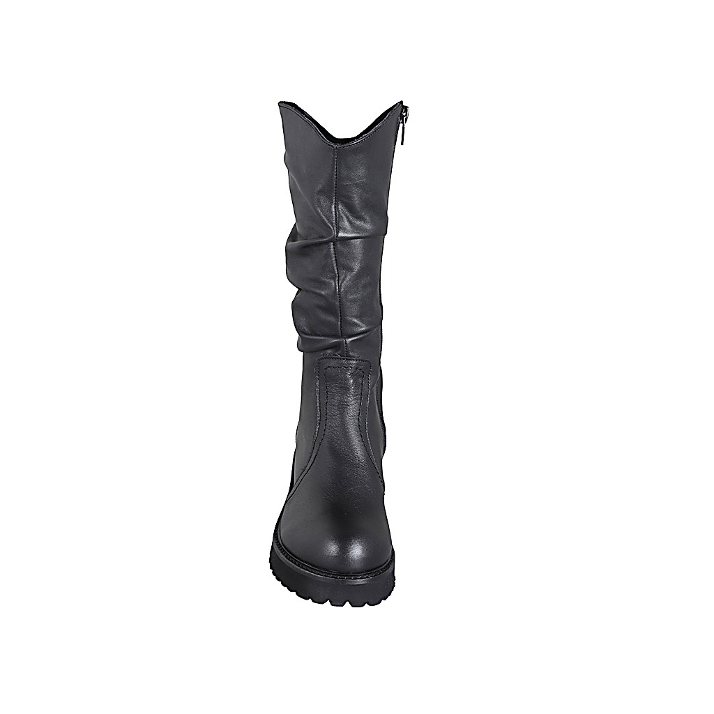 Sandalo da donna in pelle nera con plateau, cinturino e zeppa 12