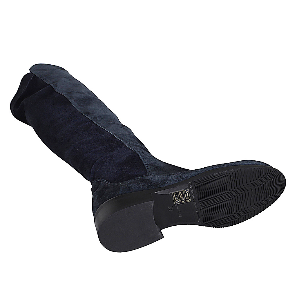 Stivale da donna con mezza cerniera in camoscio ed elasticizzato camoscio blu tacco 3 - Misure disponibili: 33, 34, 35, 42, 44, 45, 46