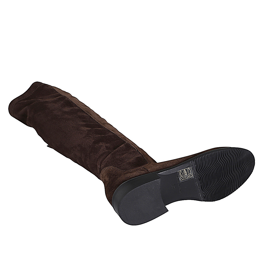 Stivale da donna con mezza cerniera in camoscio ed elasticizzato camoscio marrone tacco 3 - Misure disponibili: 33, 35, 46, 47