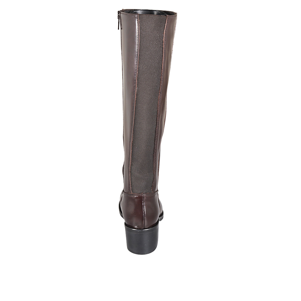 Stivale da donna con elastico posteriore e cerniera in pelle testa di moro tacco 5