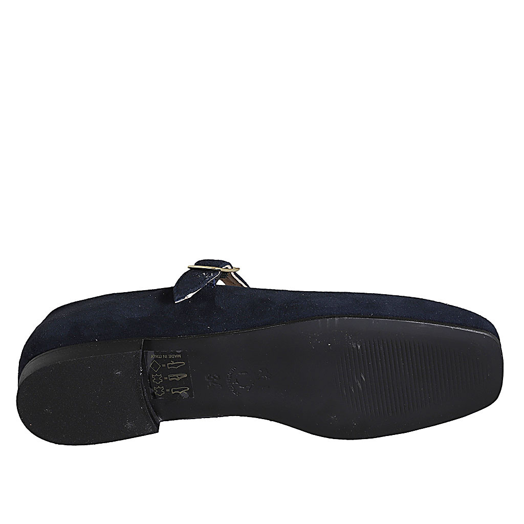 Woman's Mary Jane in blue suede with strap heel 1