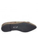 Woman's pointy-toe ballerina with metallic accessory in olive green suede heel 2