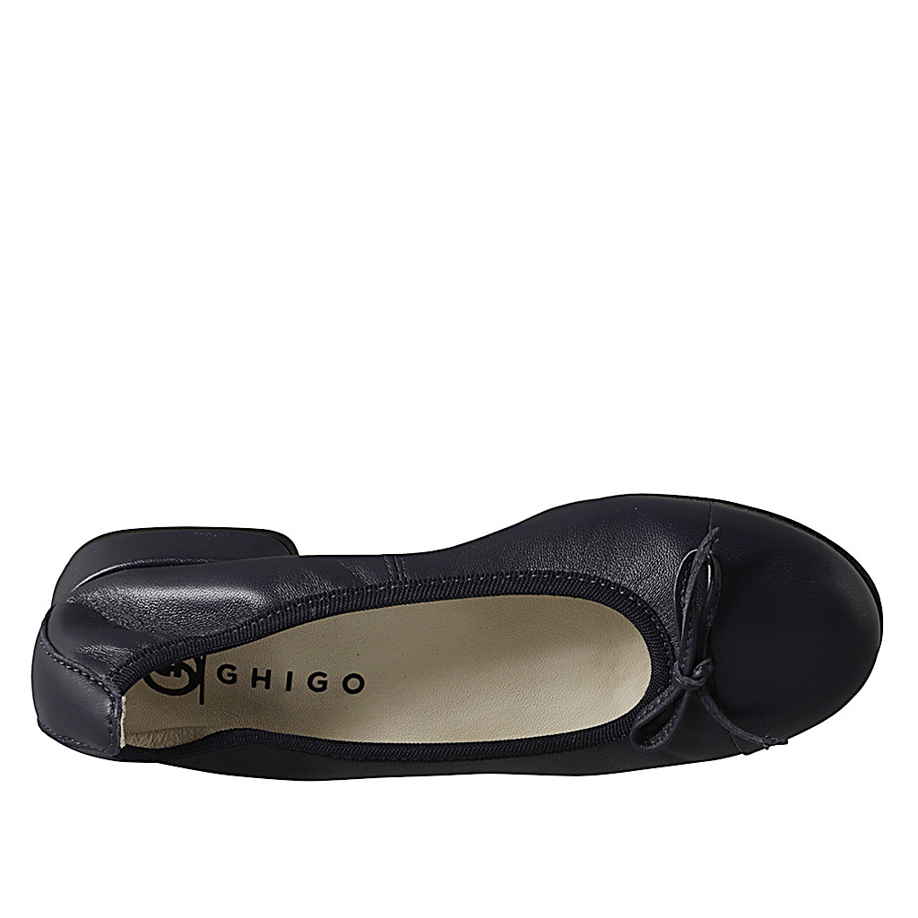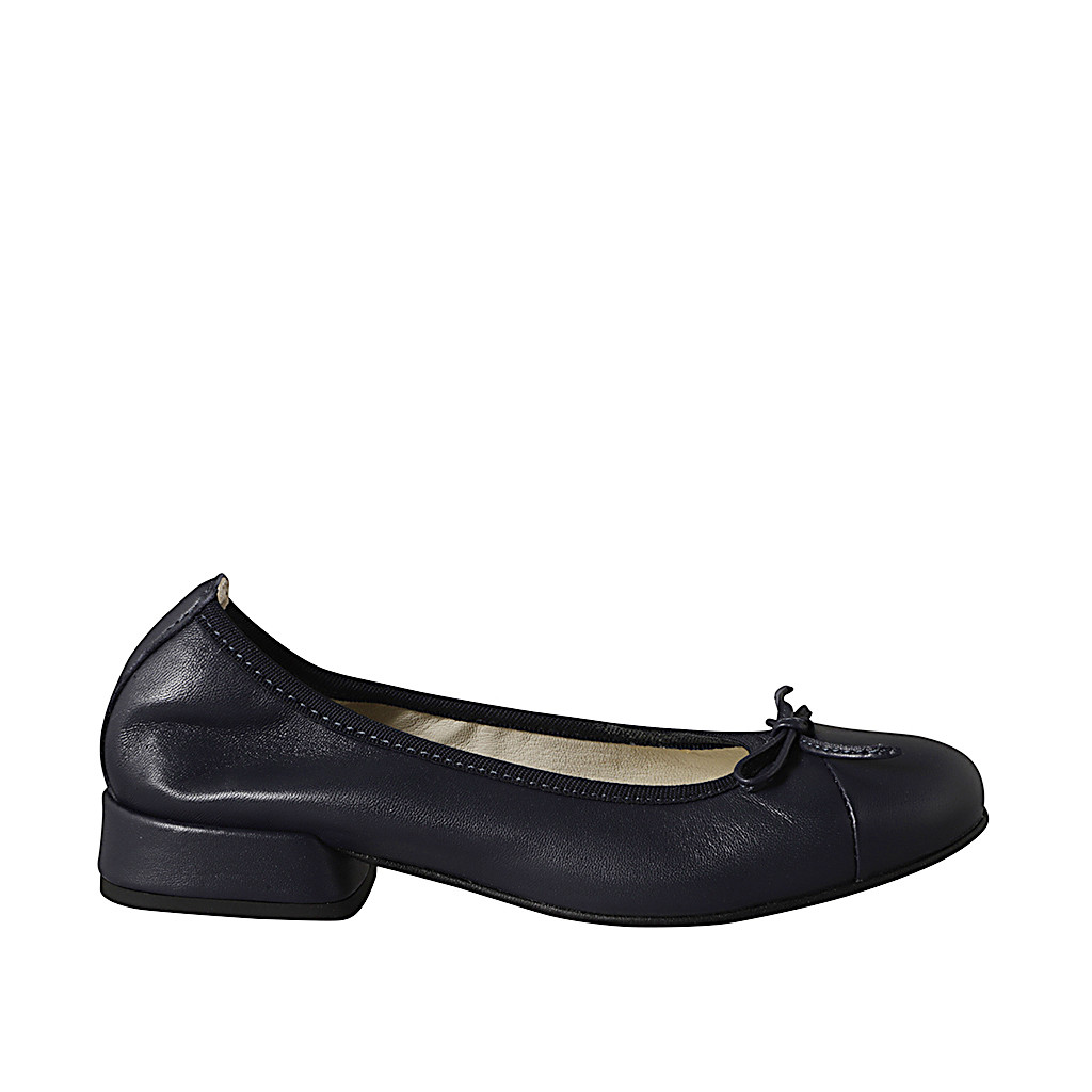 Woman's ballerina shoe with round toe and captoe and bow in cognac leather heel 2