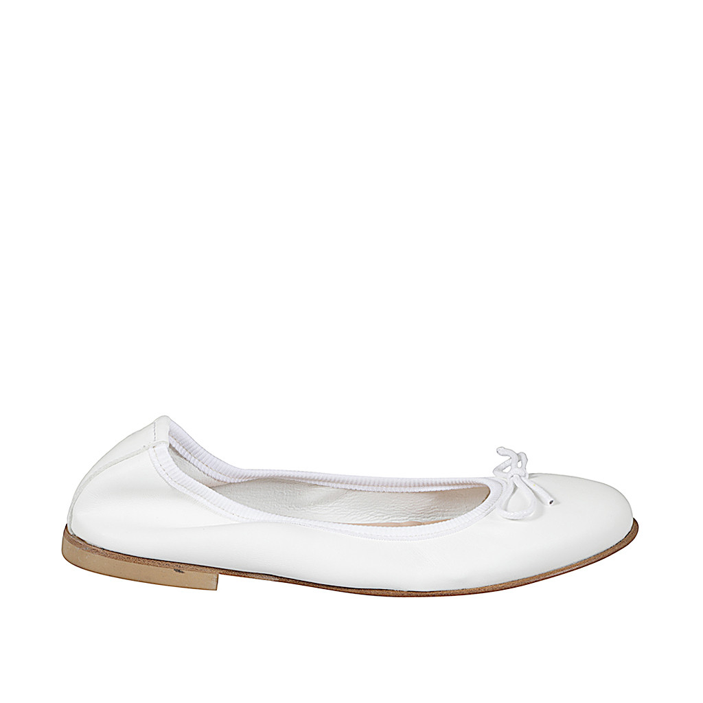 Woman's ballerina shoe with bow made of white leather, without lining and with a heel of 1
