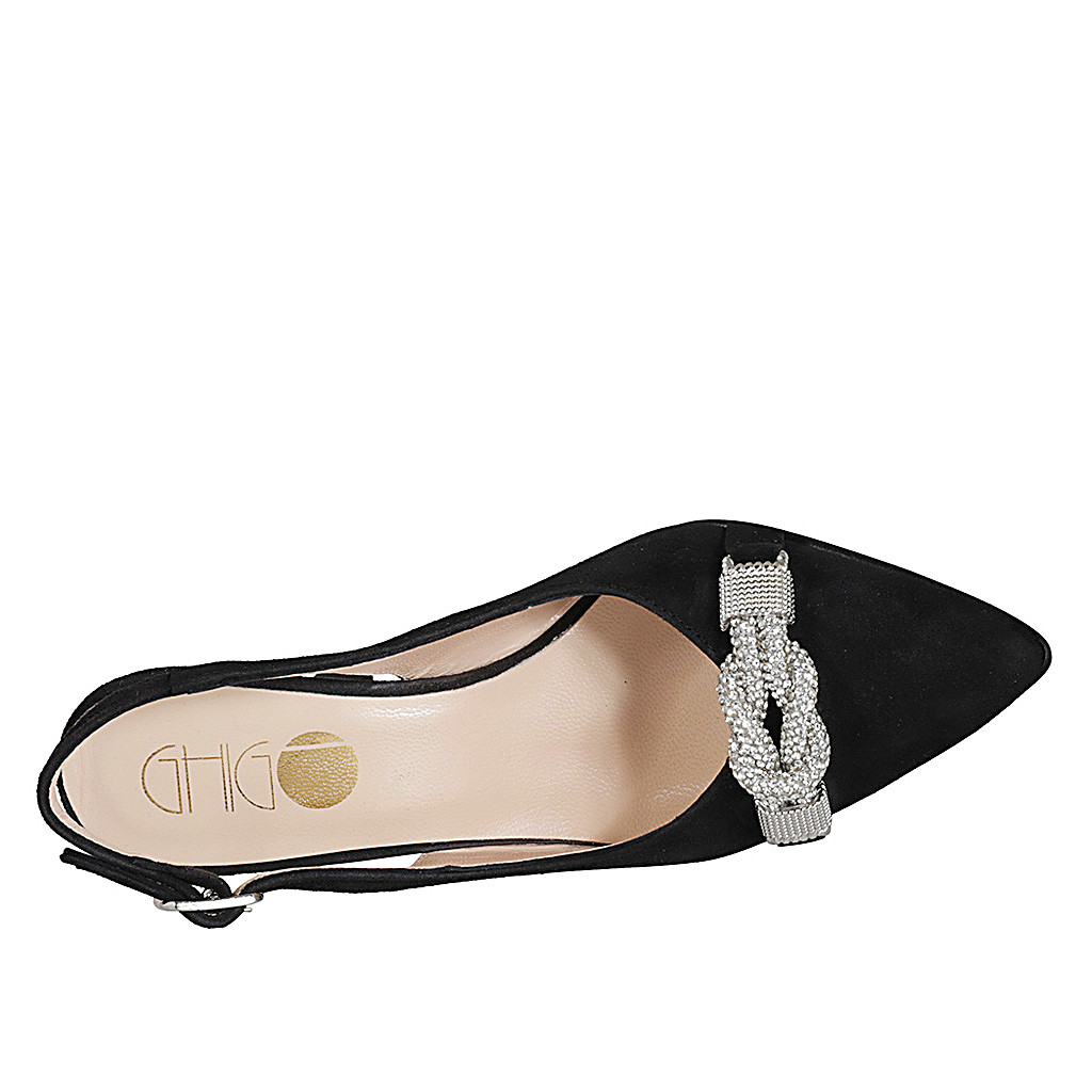 Woman's pointy slingback pump in black suede with accessory heel 8