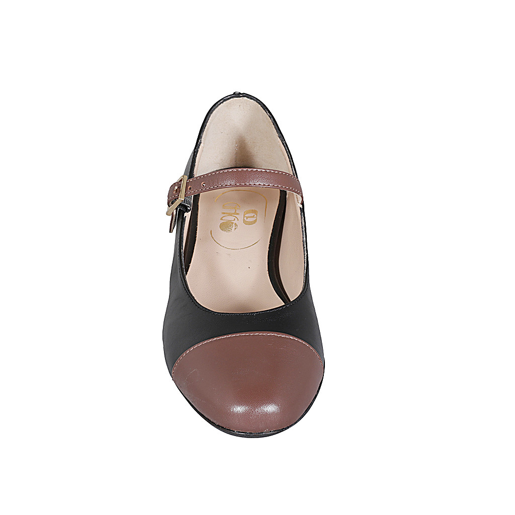 Woman's Mary Jane with rounded tip and strap in black and brown leather heel 3