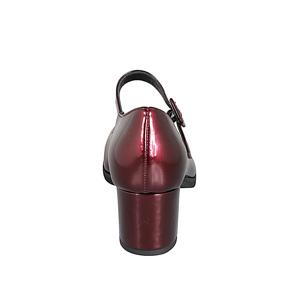 Women's Mary Jane with strap in maroon laminated patent leather heel 5