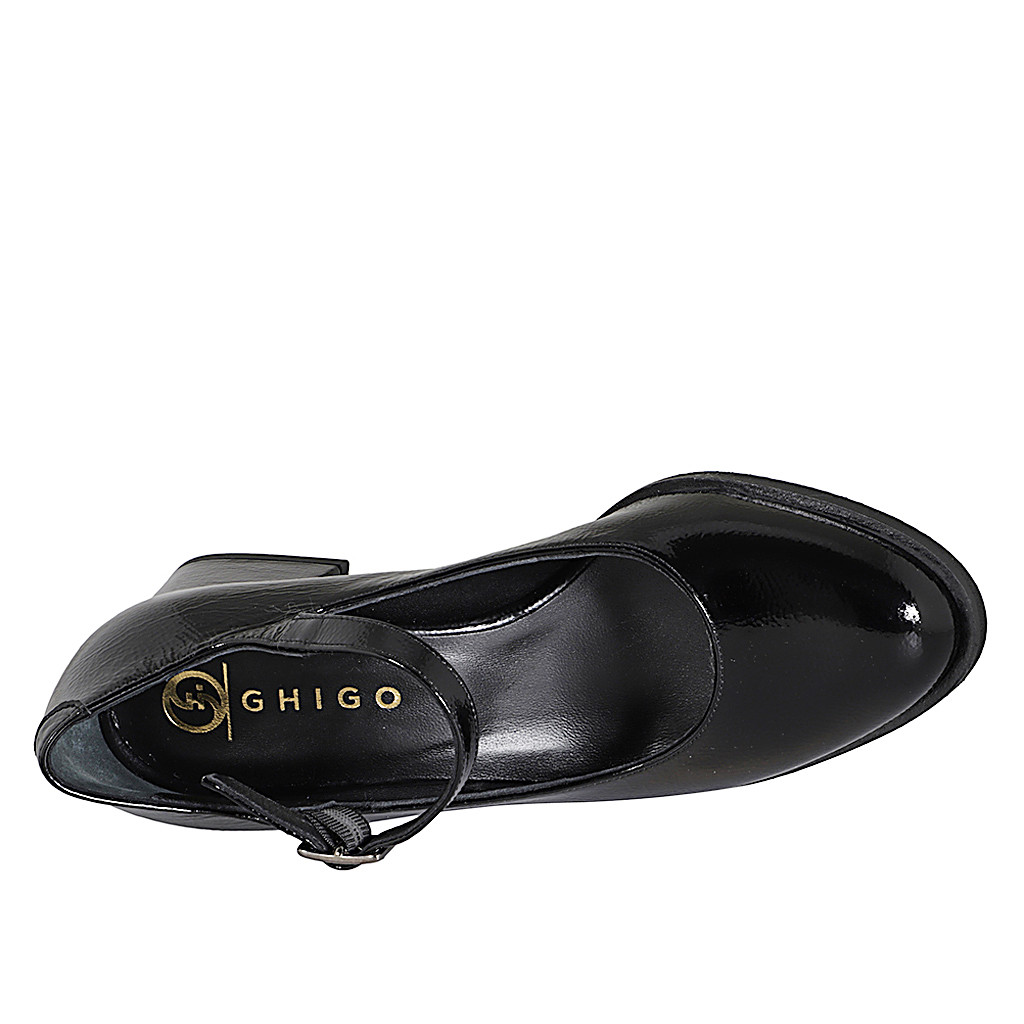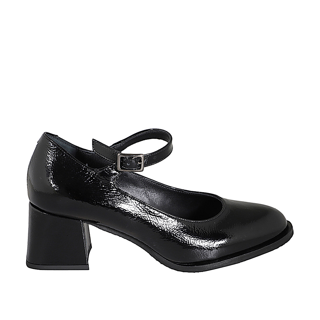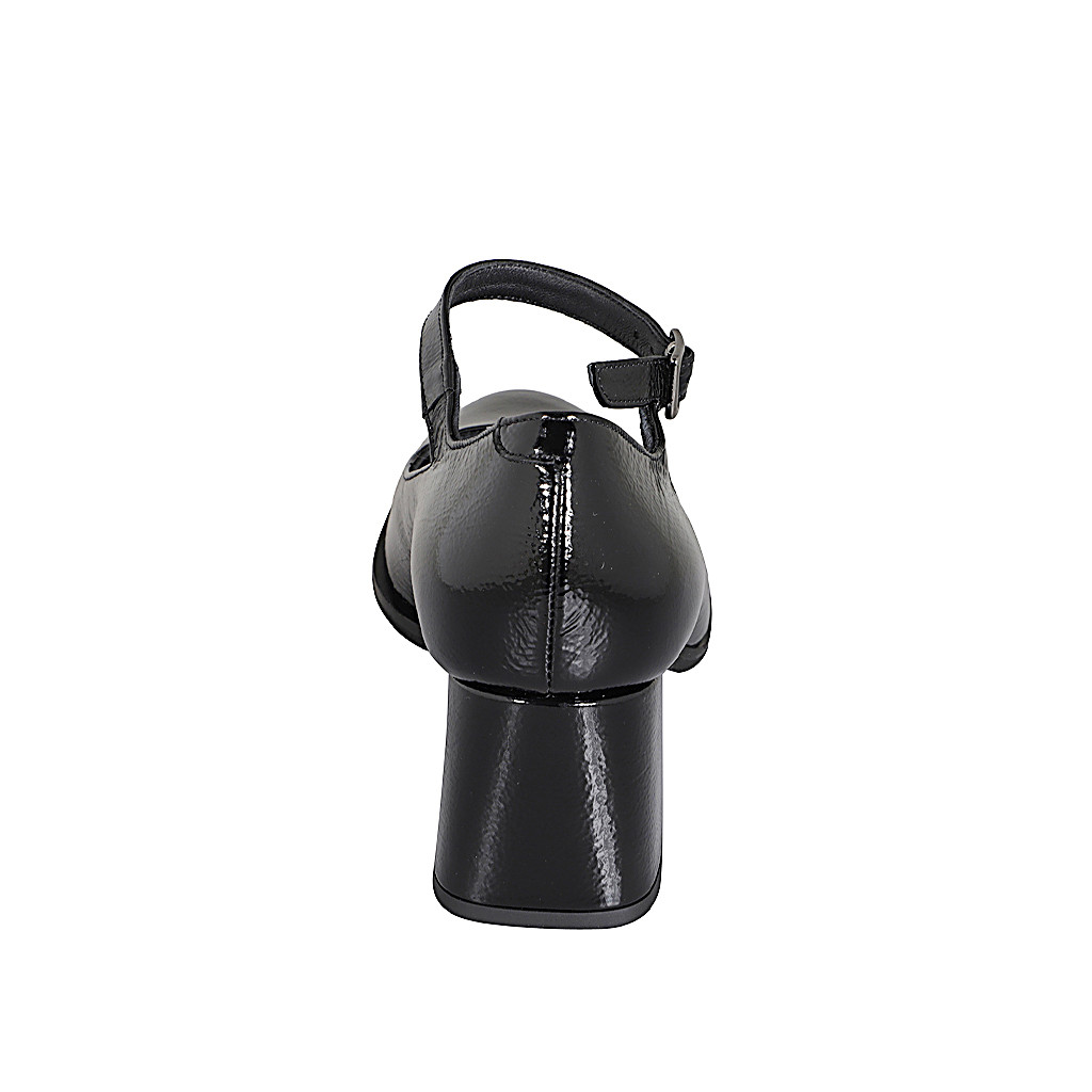 Woman's Mary Jane with rounded tip in black patent leather heel 5