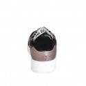 Woman's sneaker with removable insole in black suede, spotted fabric and laminated steel grey leather wedge 4