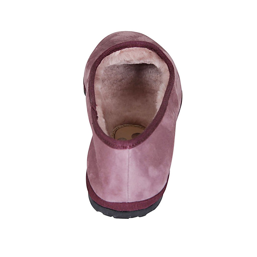 Woman's friulane slipper shoe in pink suede with fur lining heel 1