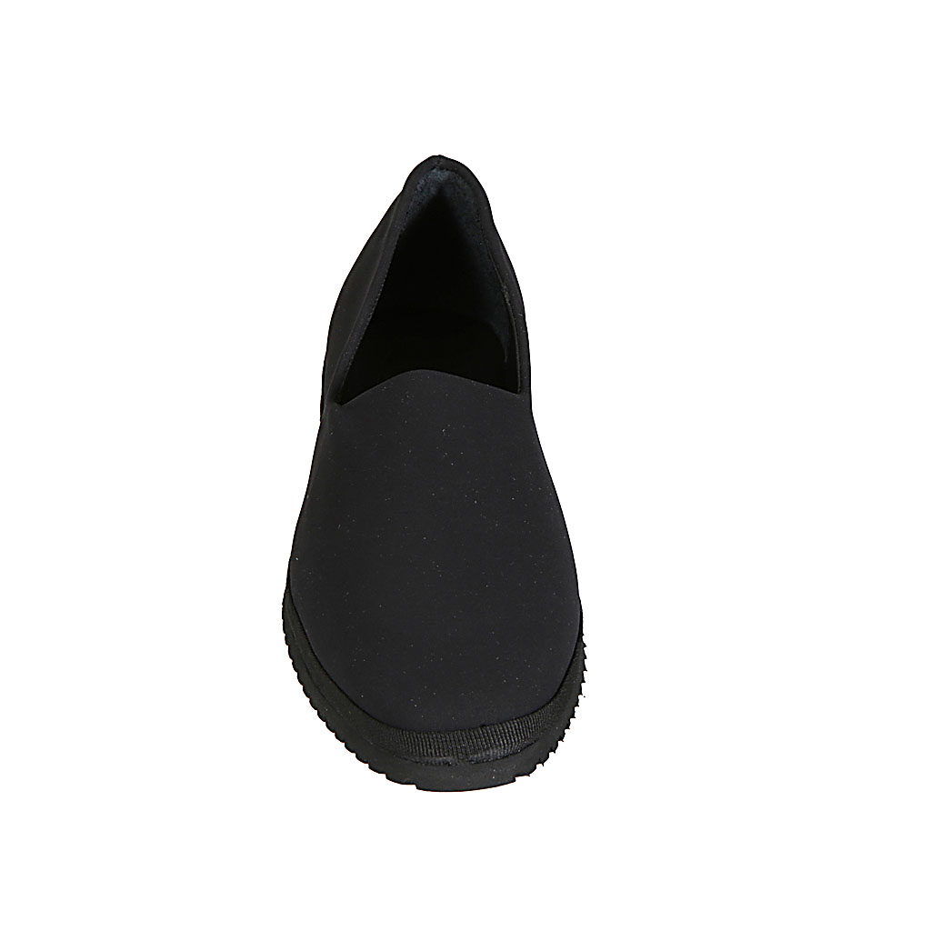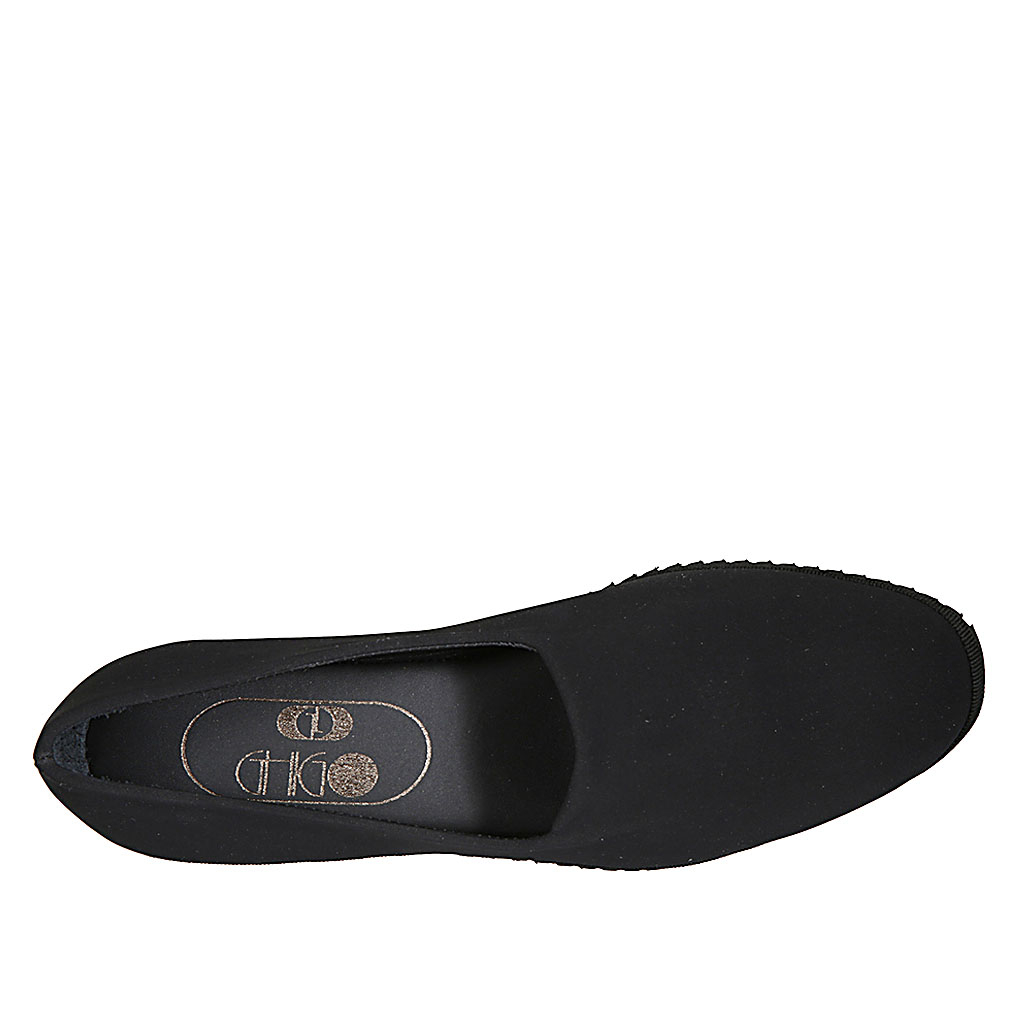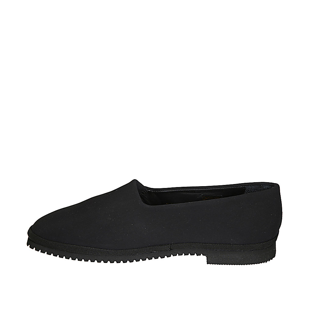 Mocassino friulano da donna in tessuto elasticizzato nero tacco 2