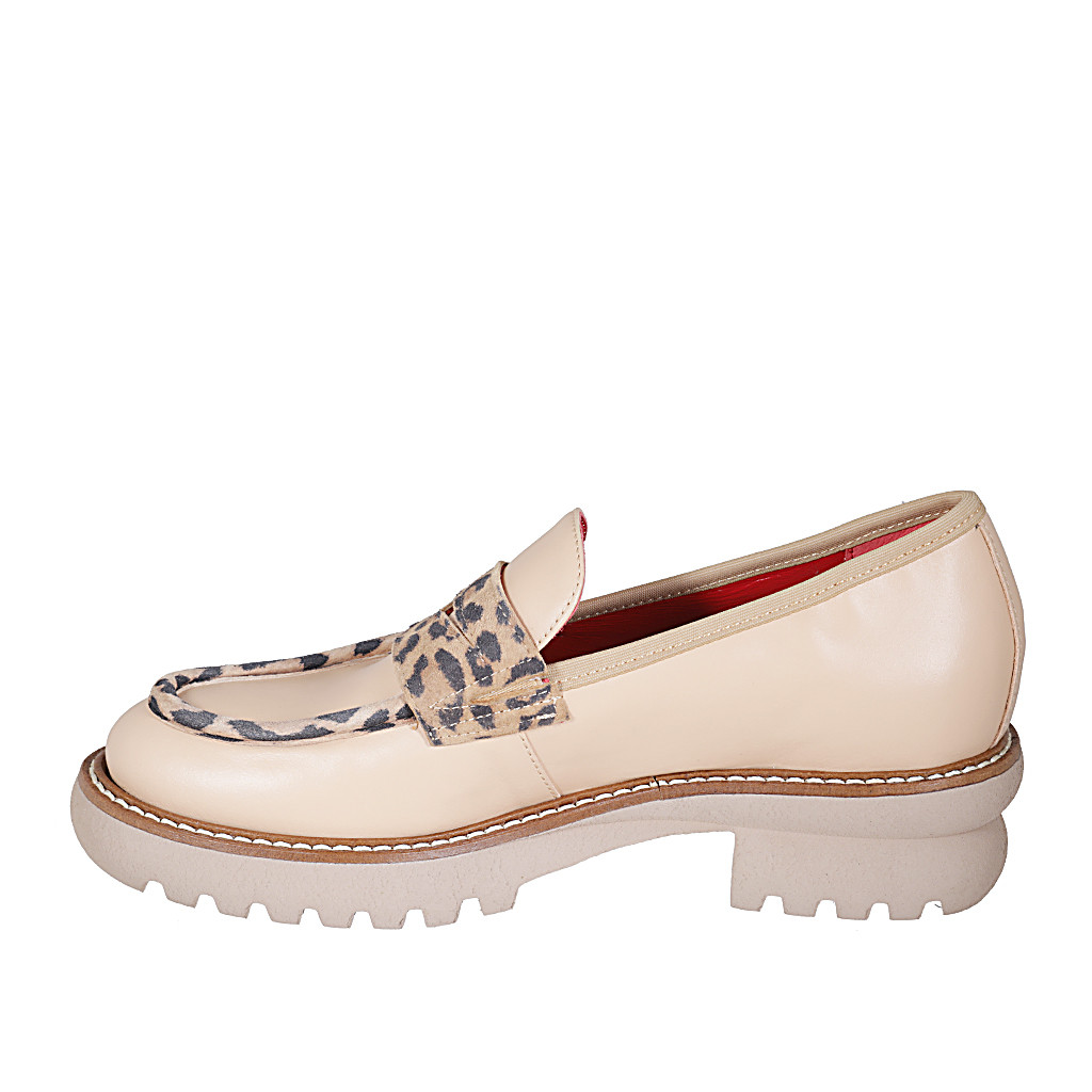Woman's mocacasin in nude leather and spotted leather heel 4