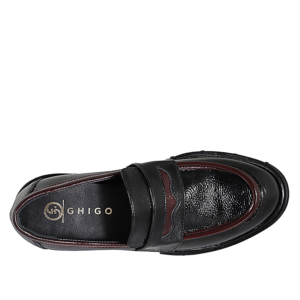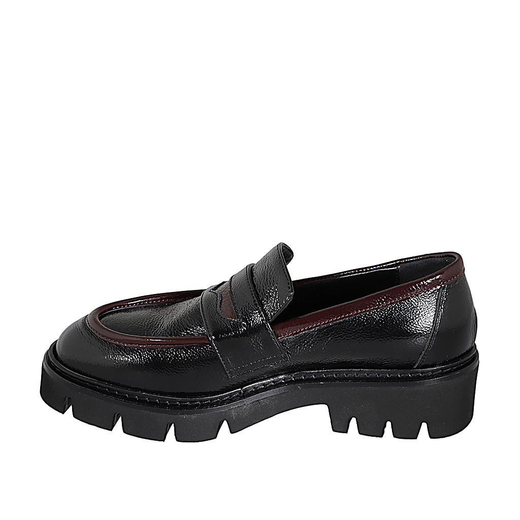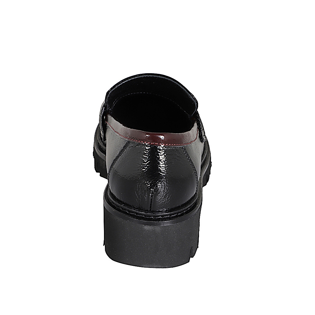 Dancing shoes with strap in platinum laminated leather and printed beige suede heel 4