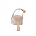 Woman’s Slingback in pink powder boucle fabric with nude leather button heel 9