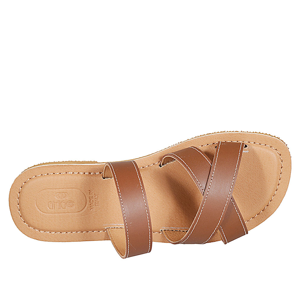 Woman's mules in cognac brown leather heel 1