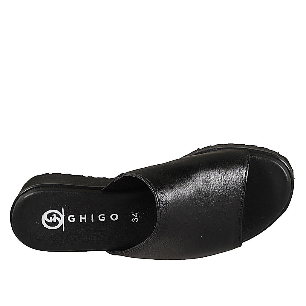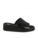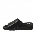 Woman's Mule with elastic in black leather and wedge heel height 4