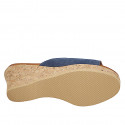 Woman's pointy open T-strap shoe in black leather and spotted suede with heel 7