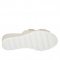 Woman's pointy open shoe with ankle strap in light beige leather with block heel 6