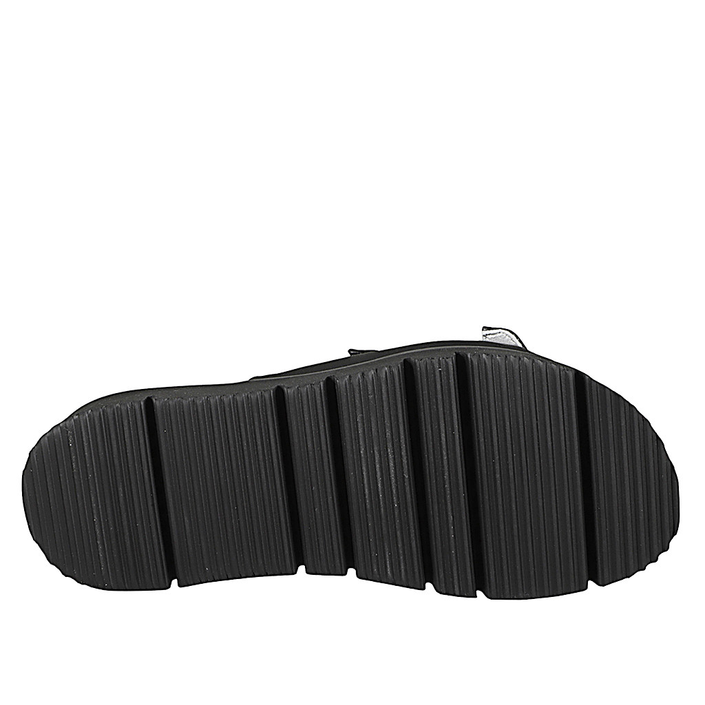 Woman's open mules with an insole in memory foam and double adjustable buckle straps in black leather wedge heel 3