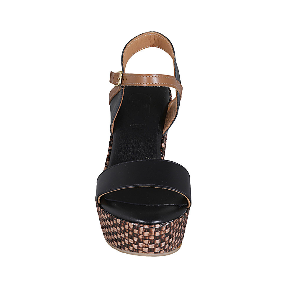 Woman's strap sandal in white multicolored mosaic printed leather with platform and wedge heel 9