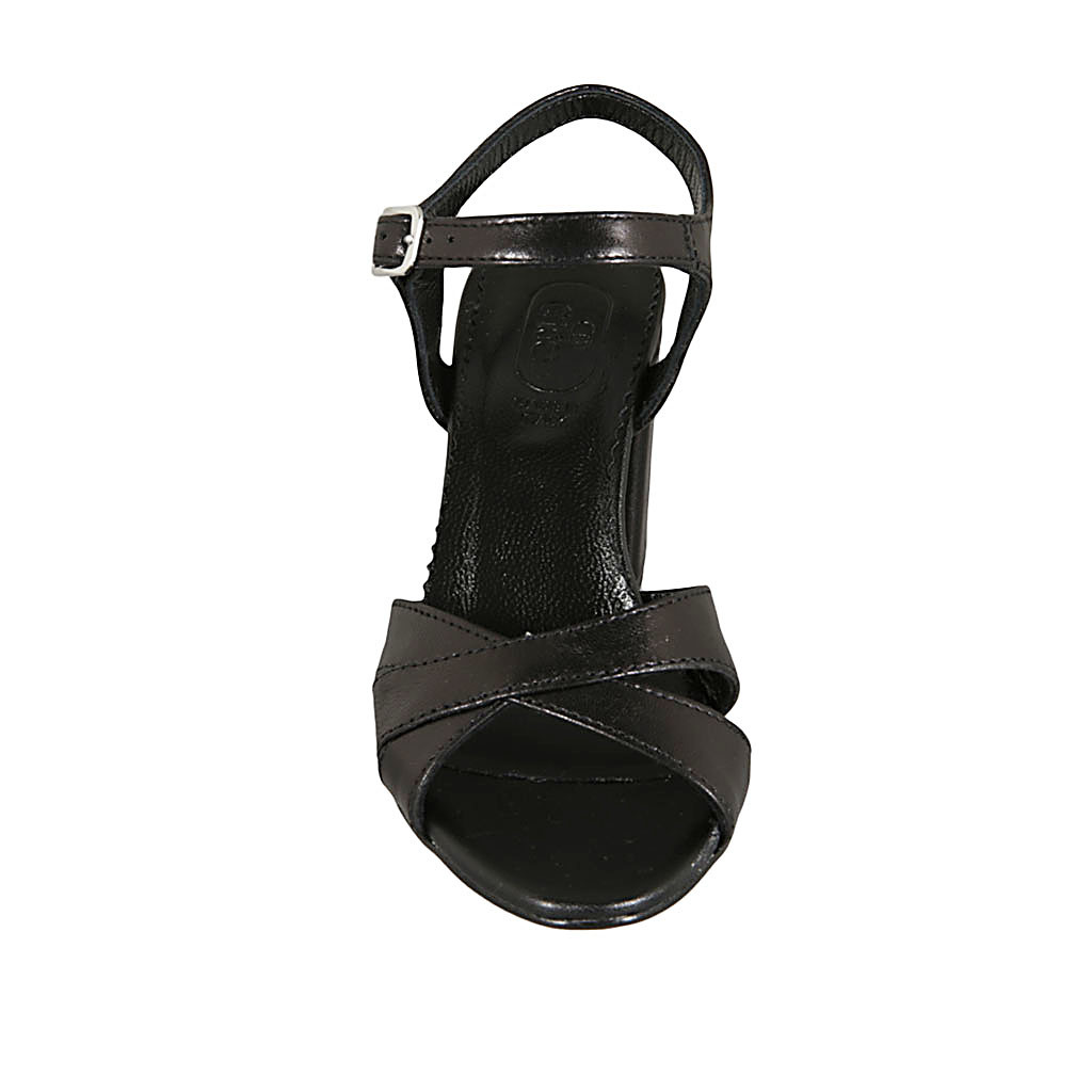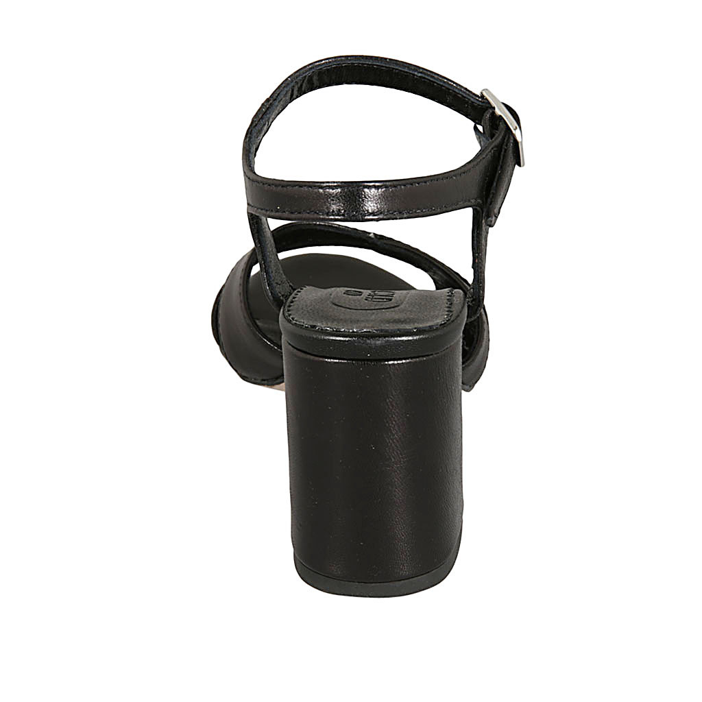 Woman's strap sandal in black leather heel 8