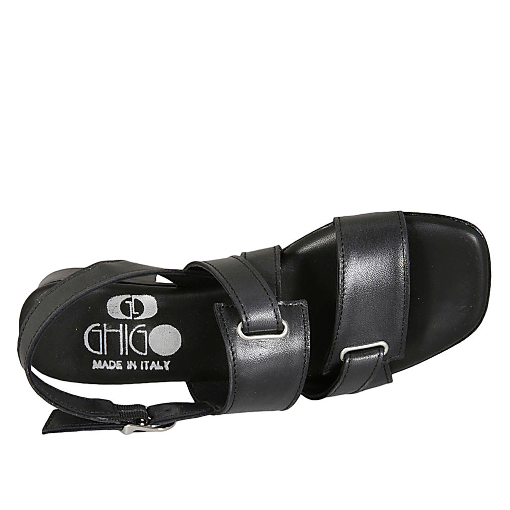 Woman's sandal in black leather heel 2