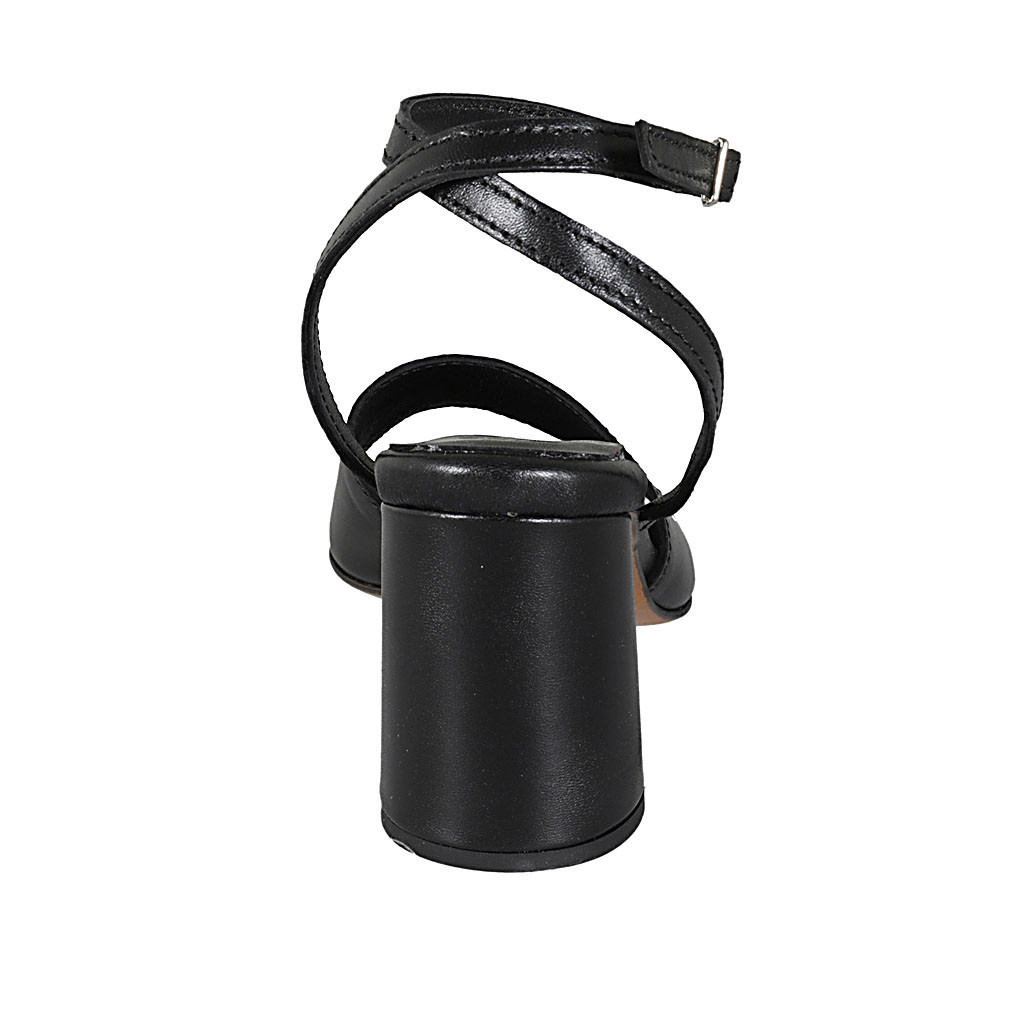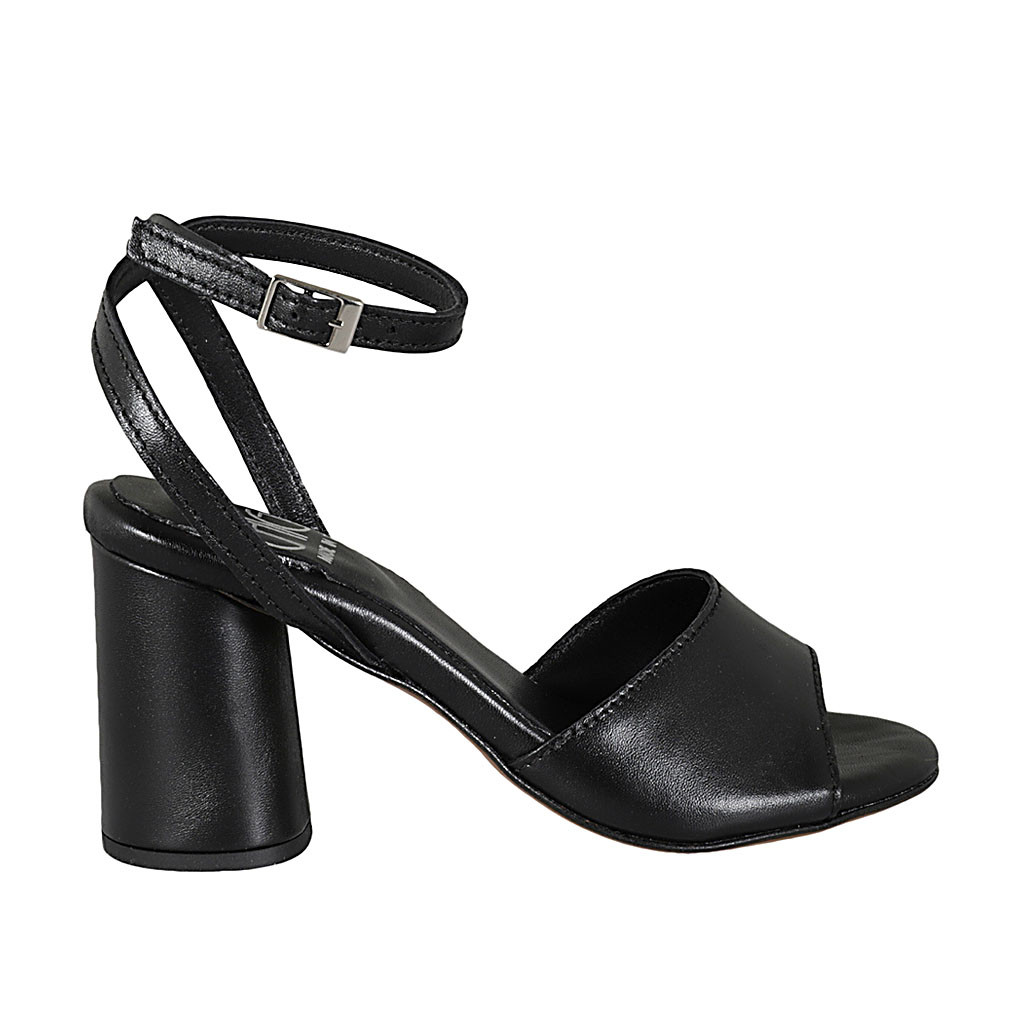 Woman's ankle strap sandal in black leather heel 7