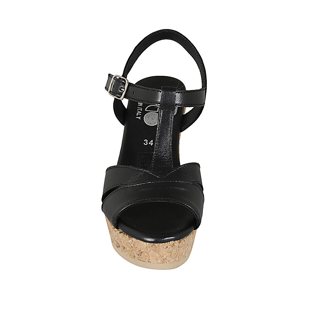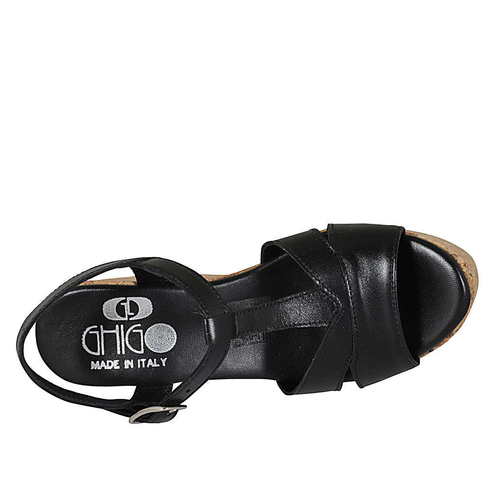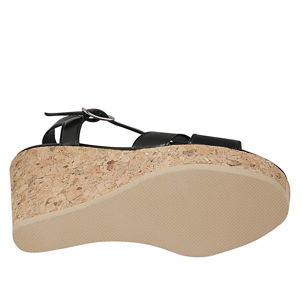 Woman's mules in blue and blue laminated printed suede with velcro strap and wedge heel 4