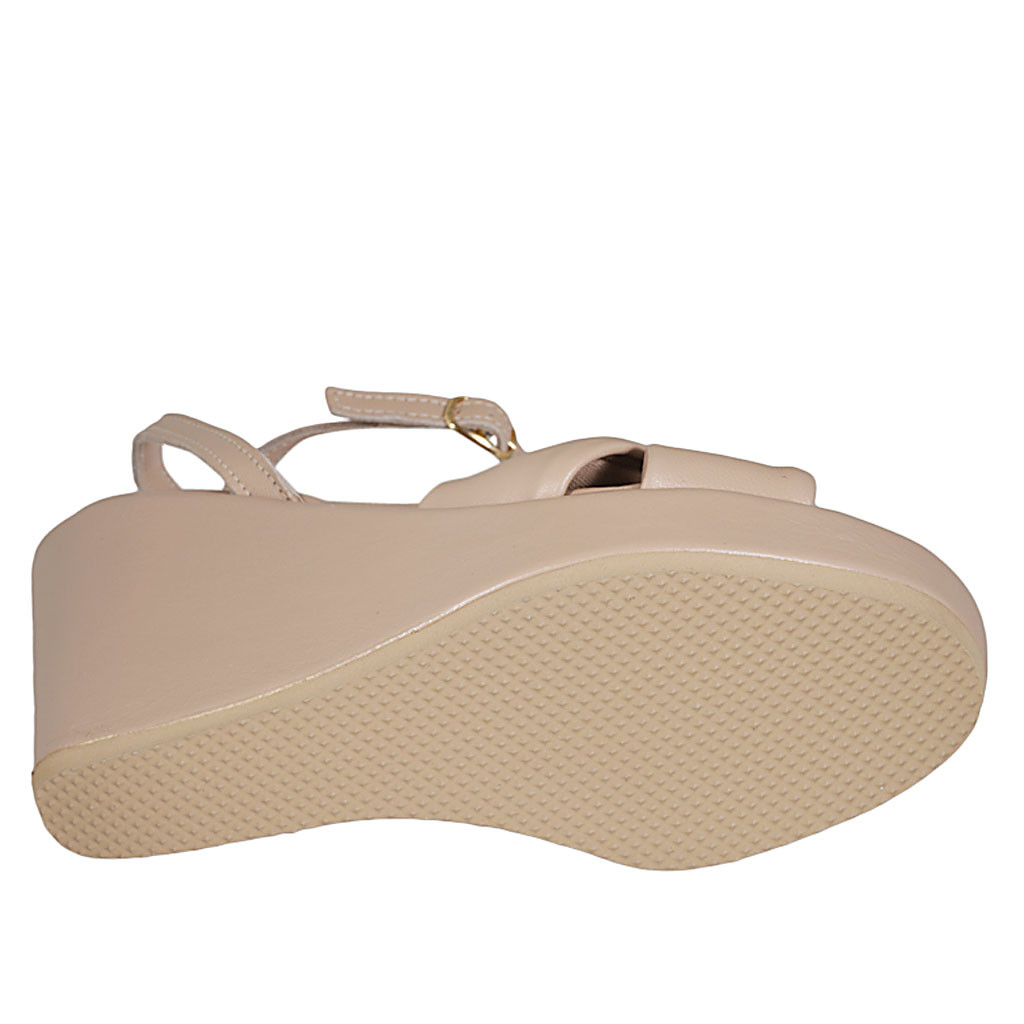 Woman's sandal with strap and knot in nude leather wedge heel 9