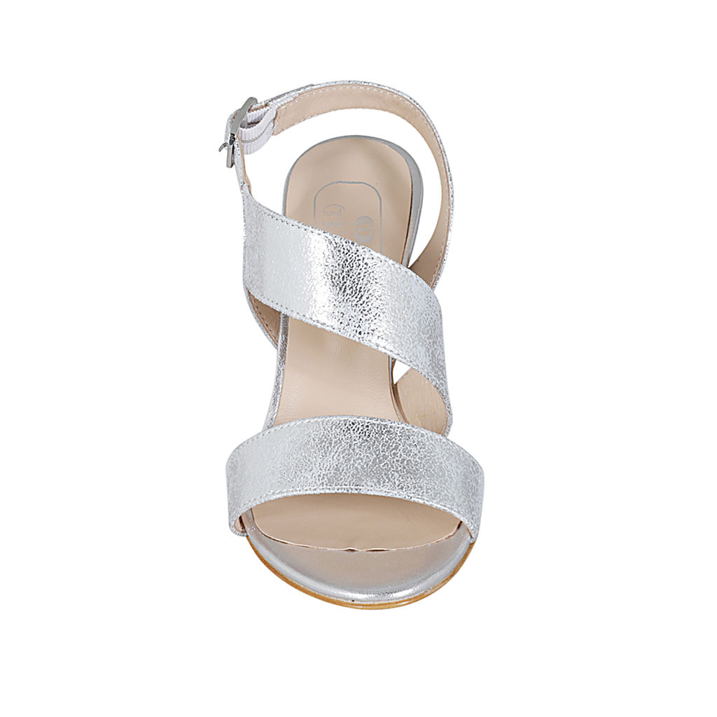 Woman's sandal in silver laminated leather heel 8