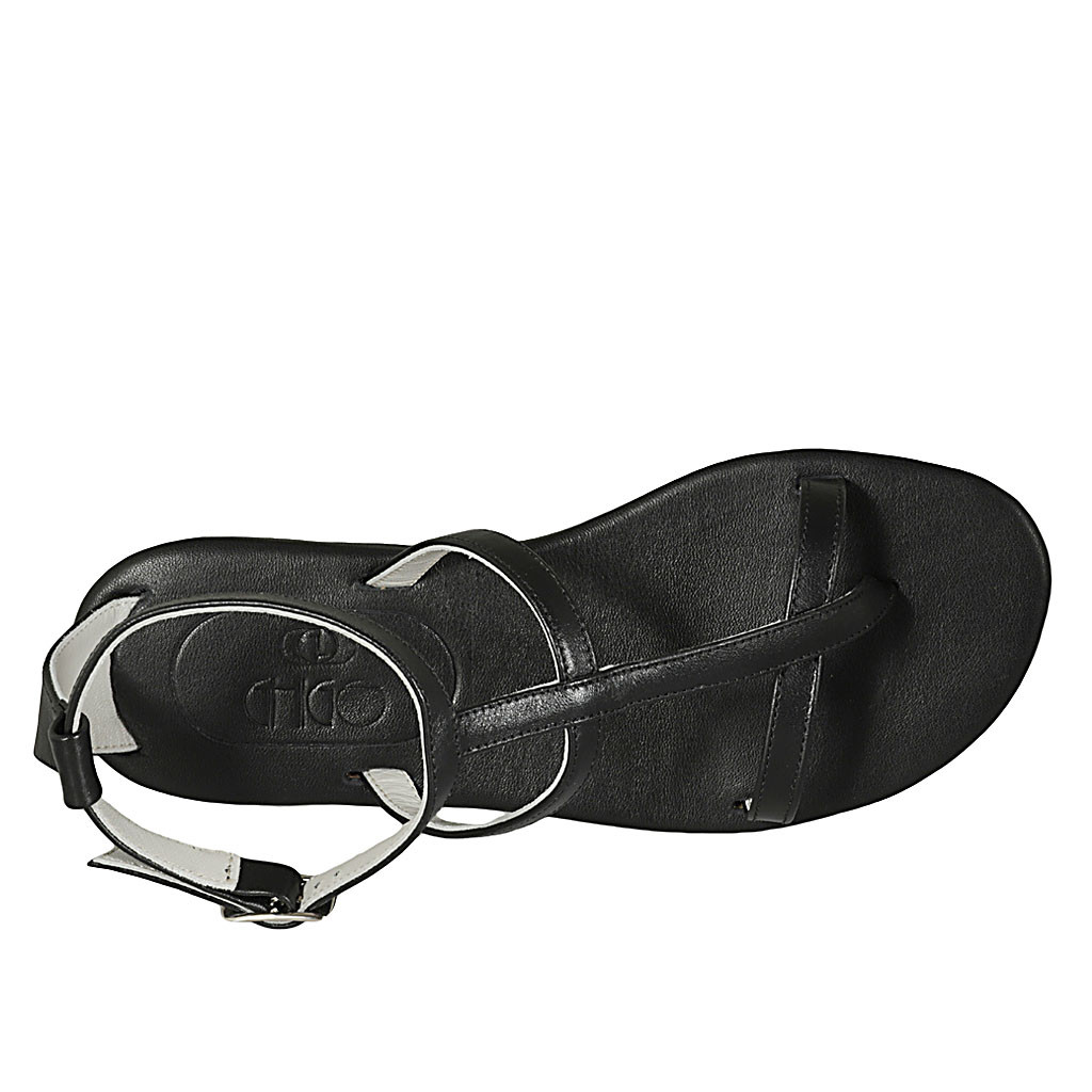 Woman's mocassin with elastic bands, captoe and removable insole in black leather wedge heel 4