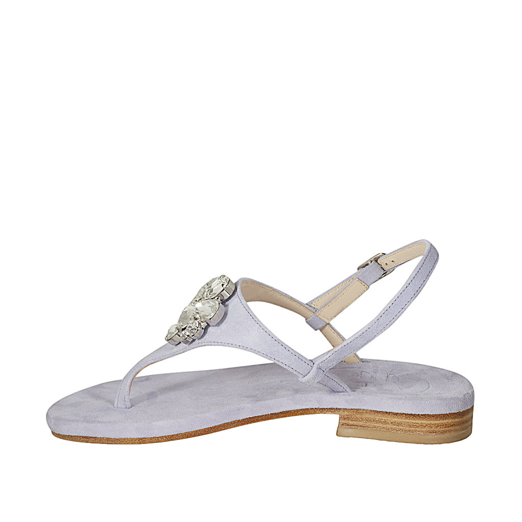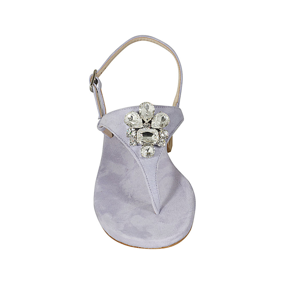 Woman's thong sandal in lilac suede with rhinestones heel 2