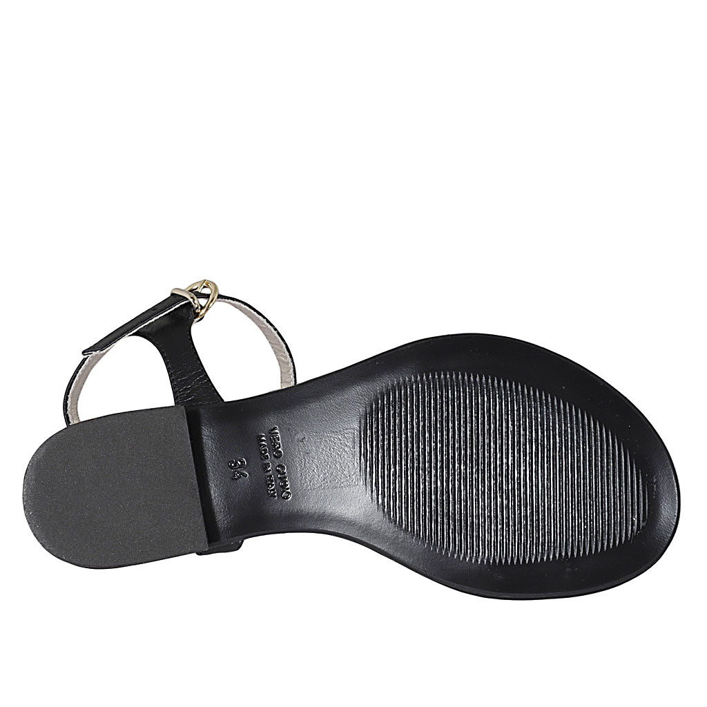 Woman's sandal in black and gray laminated leather heel 3