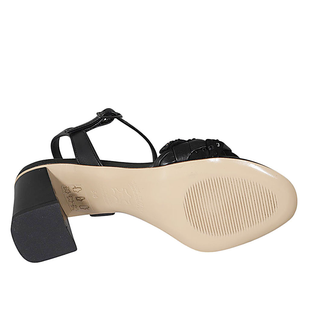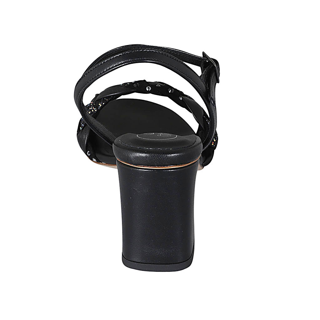 Woman's gladiator sandal with rhinestones in black leather heel 1