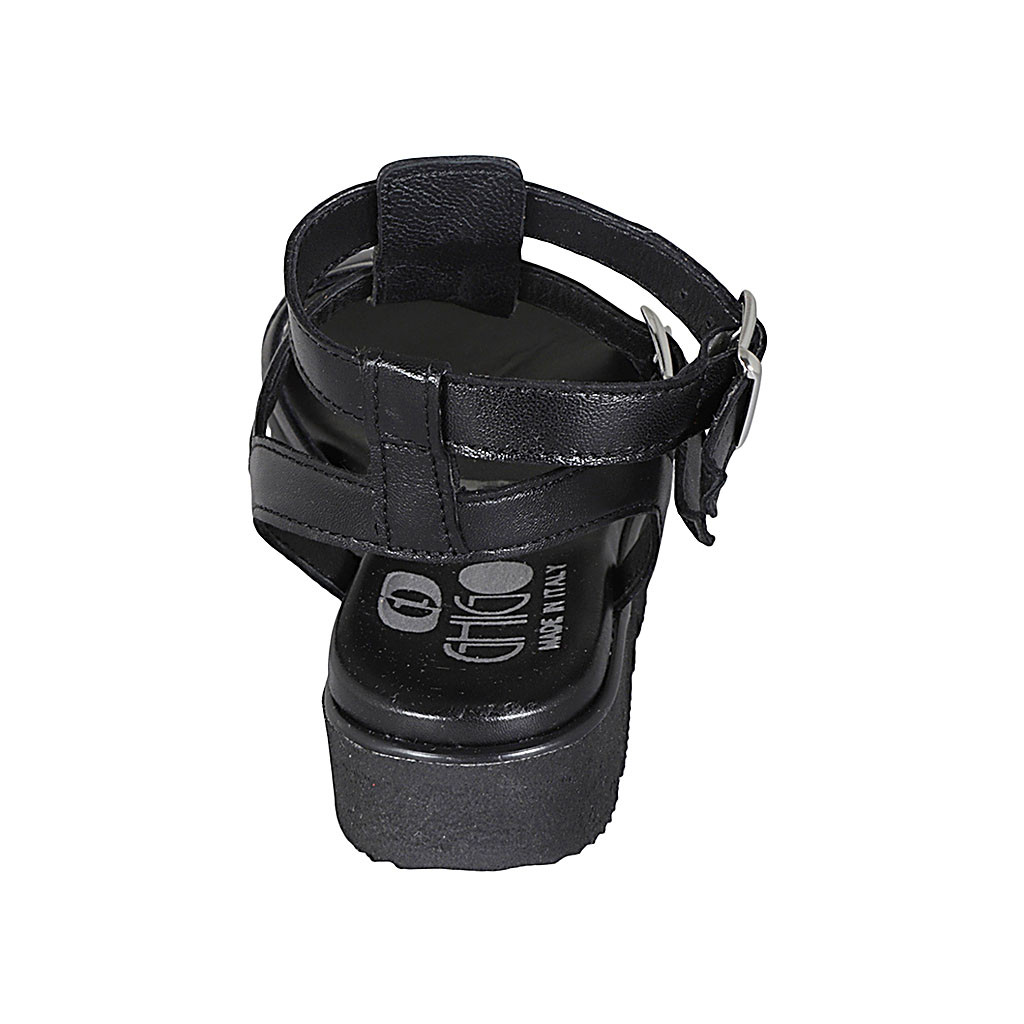 Woman's pointy boot with zipper and elastic band in black leather heel 2