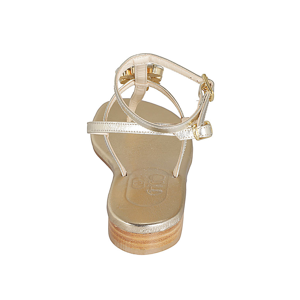 Woman's thong gladiator sandal in cognac brown leather heel 2