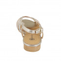 Woman’s strappy sandal in platinum, silver, and copper metallic leather heel 2