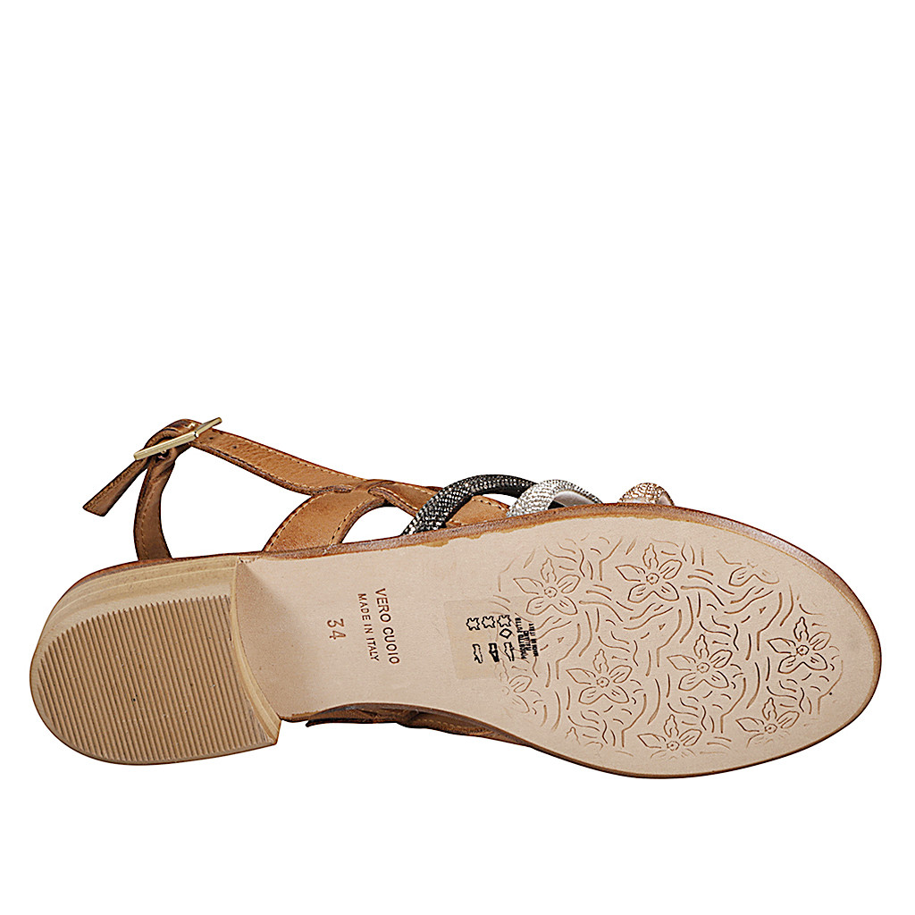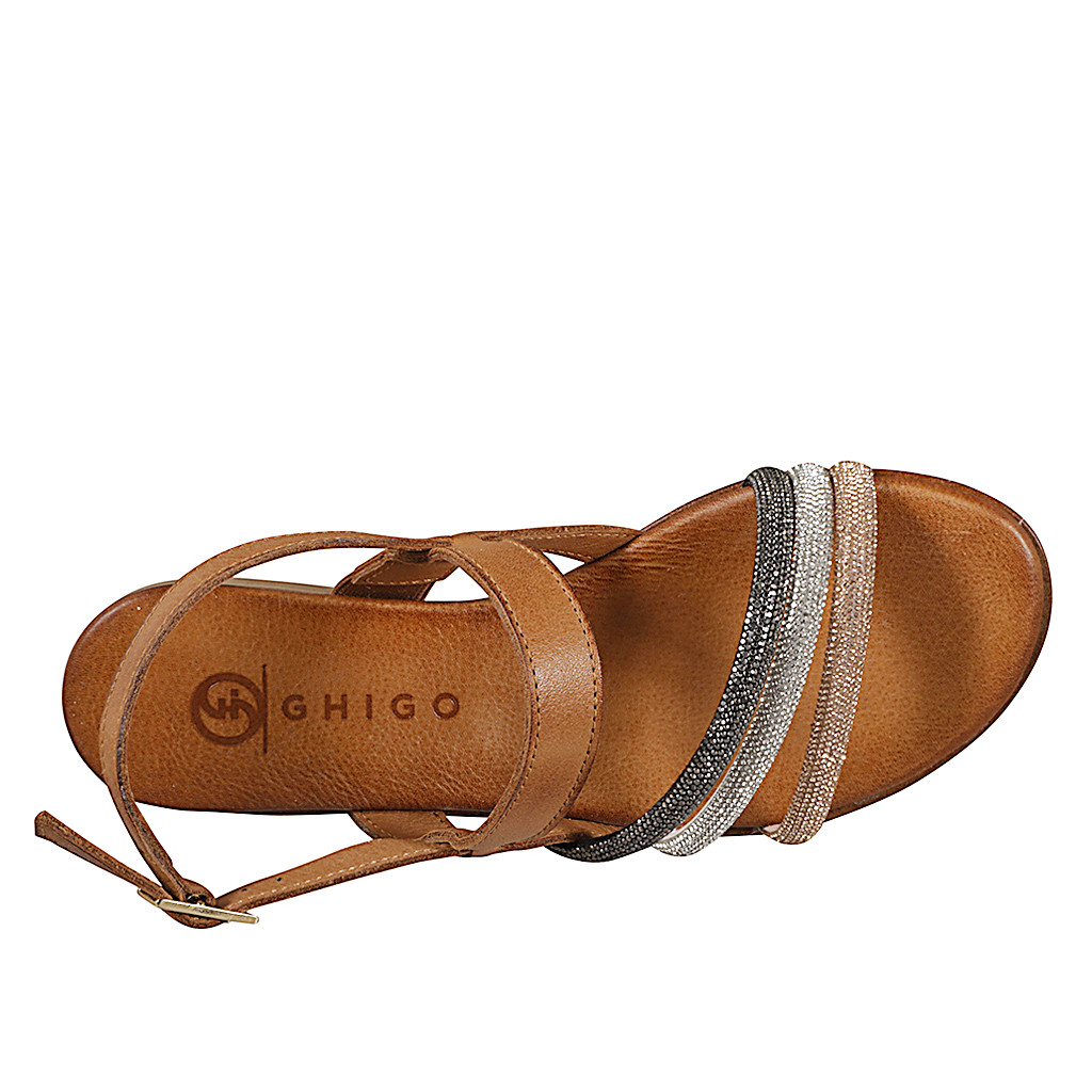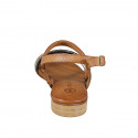 Woman's laced shoe with removable insole in cognac brown leather and braided fraffia fabric wedge heel 4