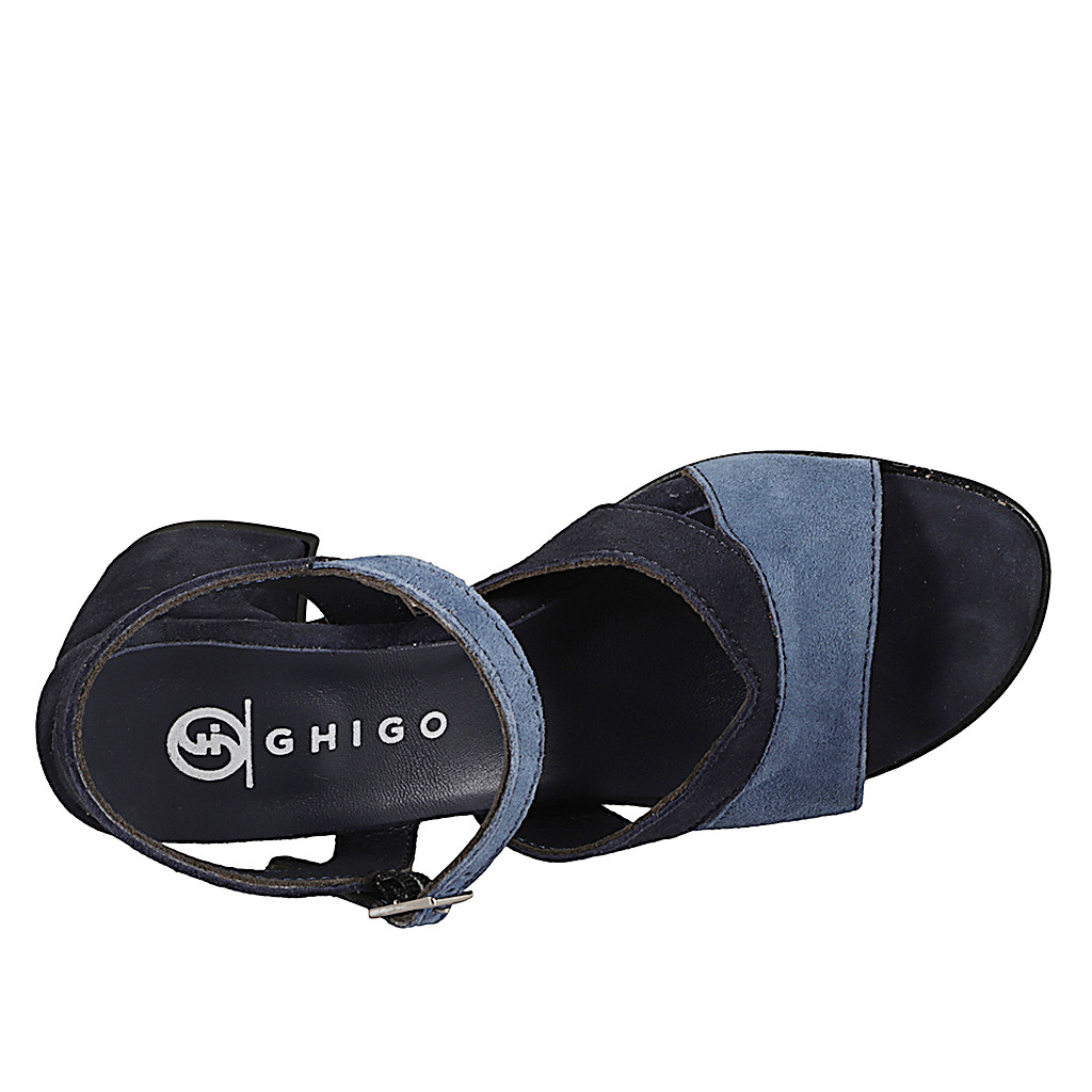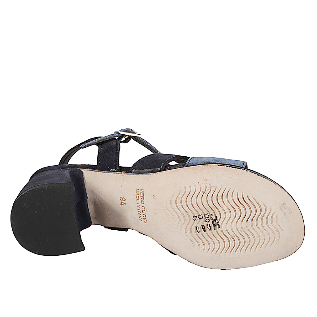 Women's sandal with ankle strap in dark blue and blue-grey suede heel 6