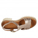 Women's sporty sandal with strap in laminated platinum leather, treaded sole heel 4