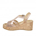 Woman's sandal with insole memory foam in red suede with plissé effect, cork platform and wedge...